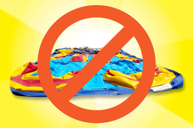 Silly string will permanently damage and stain vinyl inflatables. Silly string is also flammable. Do not use silly string anywhere near inflatables.